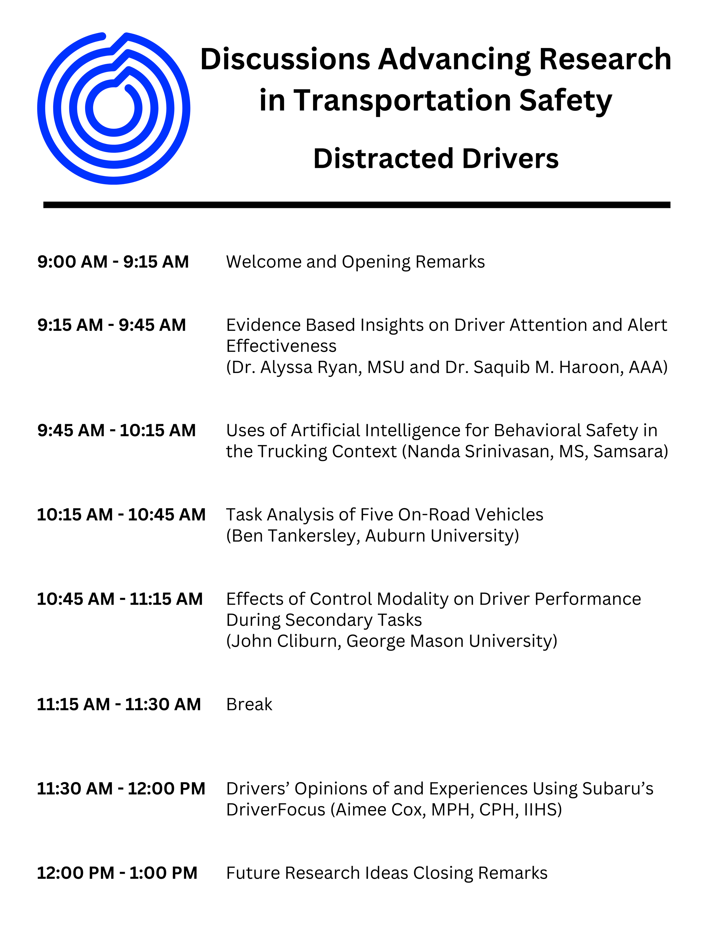 Back to All Events Distracted Drivers Friday, January 9, 2026 9:00 AM 1:00 PM The Eaton DC - Crystal Ballroom 1201 K Street Northwest Washington, DC, 20005 United States (map) Google Calendar ICS